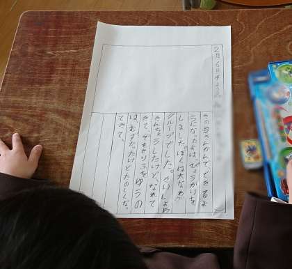 昨日の参観のときの発表について、作文を書きました。
