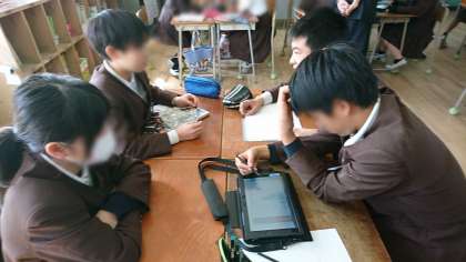 資料を使って調べる学習をしています。