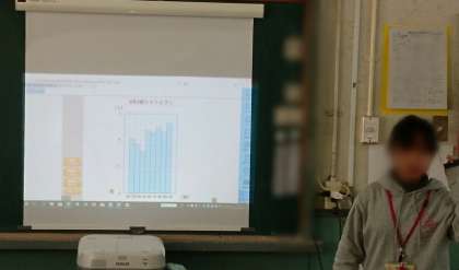 写真の学級では、学級の児童の身長のデータを集めて、タブレット端末を使ってグラフを作成しています。
