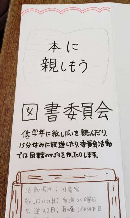 委員会のリーフレットが出来上がってきています。完成したら4年生にプレゼントします。