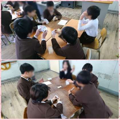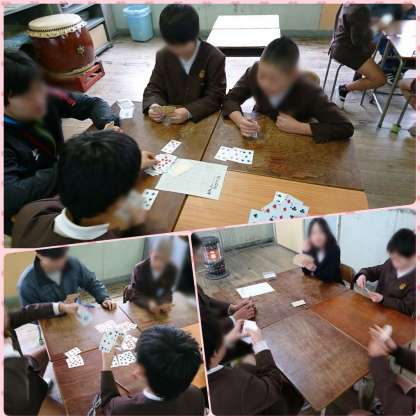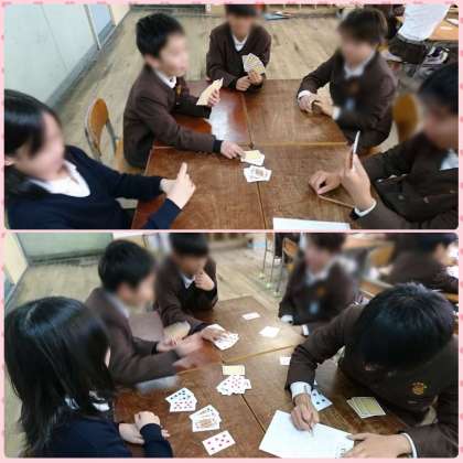 囲碁の対戦をしたあと、トランプゲームの前回の対戦結果から、対戦ペアを組んで、行っています。