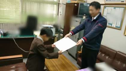 紹介したあと、校長室で、改めて校長先生から賞状をいただきました。