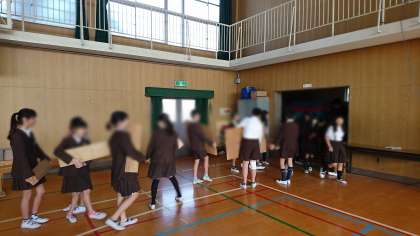 卒業式を20日に行います。式の練習をしていけるよう、講堂の片付けとイス並べをして、準備をしました。