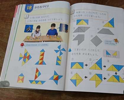 「三角を組み合わせたら、四角になるよ」と、発見をしたことを呟いていました。