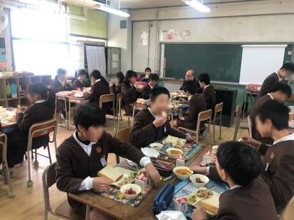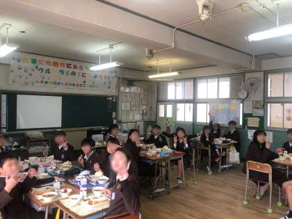 今日は、卒業祝い献立です。6年生の卒業をお祝いする気持ちが込められています。みんなで楽しく食べることができました。