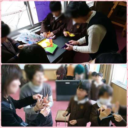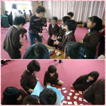 1年生と、地域の方々を招待して、「昔遊び」を行いました。