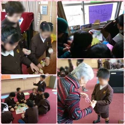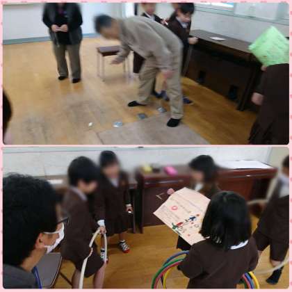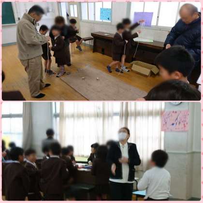 こままわしは、地域の人は、すいすい紐を巻いて長く回していました。