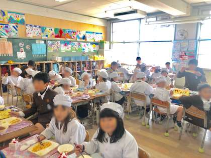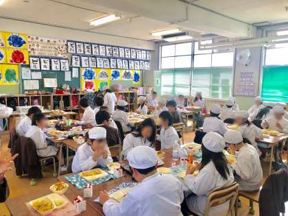 卒業を間近に控えた6年生を各教室に迎えて一緒に給食を食べる、お別れ給食を行いました。