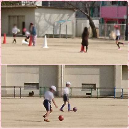 ボールの扱いになれるために、何度もボールをドリブルしながら進み、コーンの間を抜けるように、ボールを蹴りました。