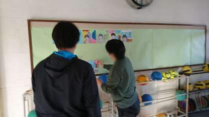 6年生の最後の作品を貼っています。それぞれ自分にそっくりな作品が出来上がっています。