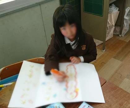 お別れ給食前、どの学級も、丁寧に、招待用の名札を丁寧に作っていました。