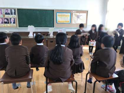 国語科で学習した「ニャーゴ」の話をペープサートや紙芝居で、1年生に伝えました。