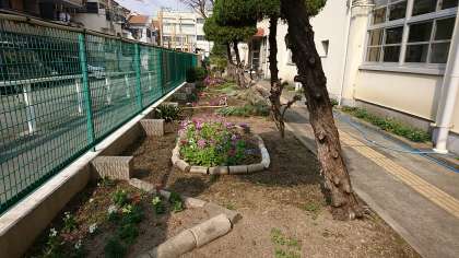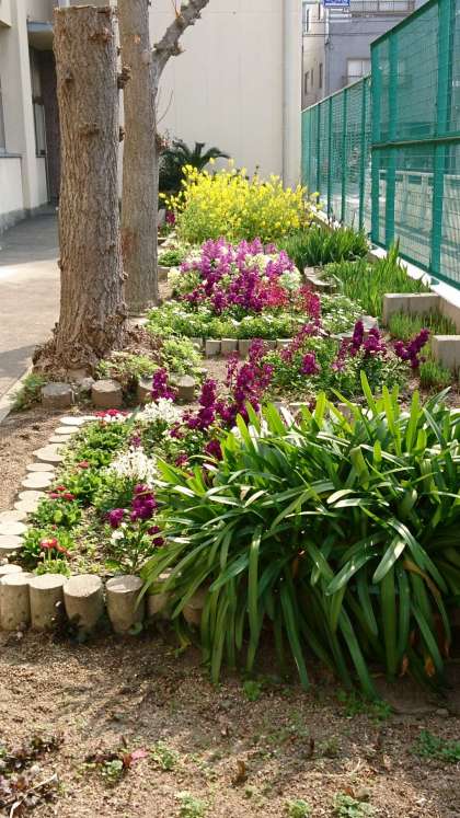 グリーンサポート隊の方々が、日々手入れをしてくださっている校舎周りの花が、きれいに咲いています。