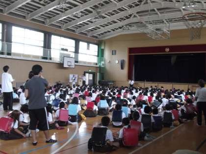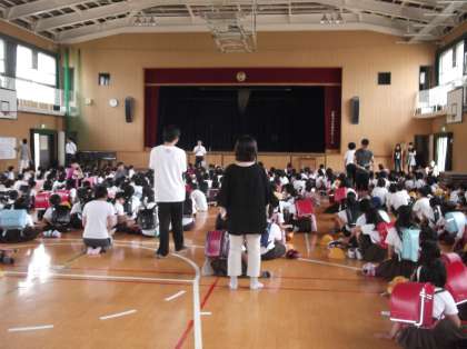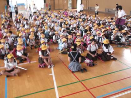 9月1日(月) 本日、4時間目に風水害避難訓練と集団下校を行いました。必要でない場合は外出しない。川や海、内港には危険なので近づかない。などの事前指導の後、講堂へ避難しました。その後、集団下校の班を確認し下校しました。
