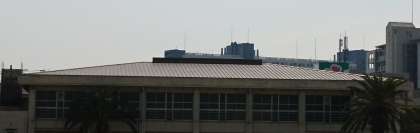 環境局からの依頼で、体育館の屋根と第3校舎の屋上に、太陽光パネルの設置をしています。