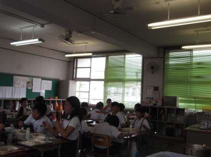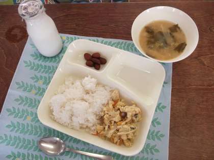 9月2日(火)より給食開始しました。本日2日の献立は、親子どんぶり・みそしる・金時豆の煮ものでした。給食委員会も早速給食の放送を行い、教室では友だちと夏休みの思い出などを話しながら、笑顔で食べる姿が見られました。