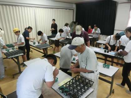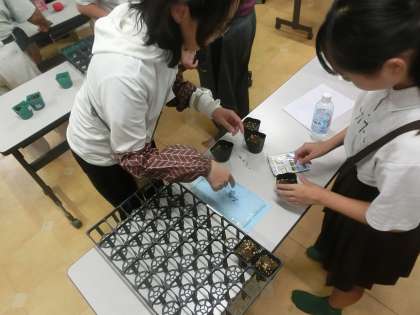 環境委員会の子どもたちに、苗作りなどを教えていただき、学校の自然環境整備に向けて取組をすすめています。