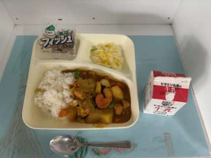 「チキンカレーライス」は、鶏肉を使用した毎回好評な献立です。