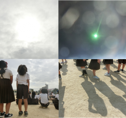 ※写真右上:遮光板を用いて見た太陽(輪郭がはっきりしています)