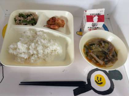 「焼き豚のスープ」は、焼き豚、はくさい、たまねぎ、にんじん、えのきたけ、青みににらを使用しています。