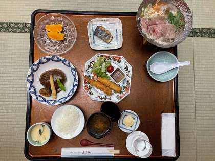 広いお風呂で入浴をすませ、待ちに待った夕食です。豪華なご飯に舌鼓を打ちながら、楽しくいただいています。