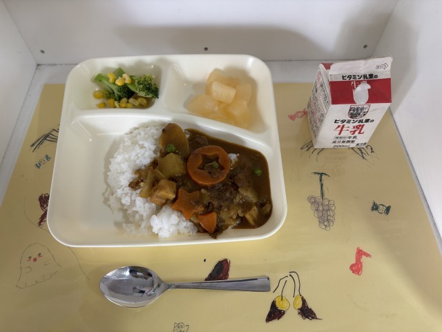 「冬野菜のカレーライス」は、児童に人気のカレーライスに、冬が旬のだいこん、れんこんなどを使用しています。