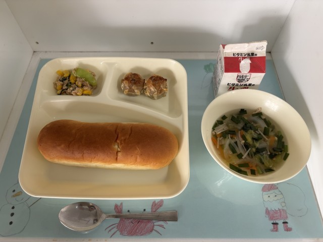 「中華スープ」は、鶏肉、はくさい、たまねぎ、にんじん、えのきたけ、青みににらを使用しています。