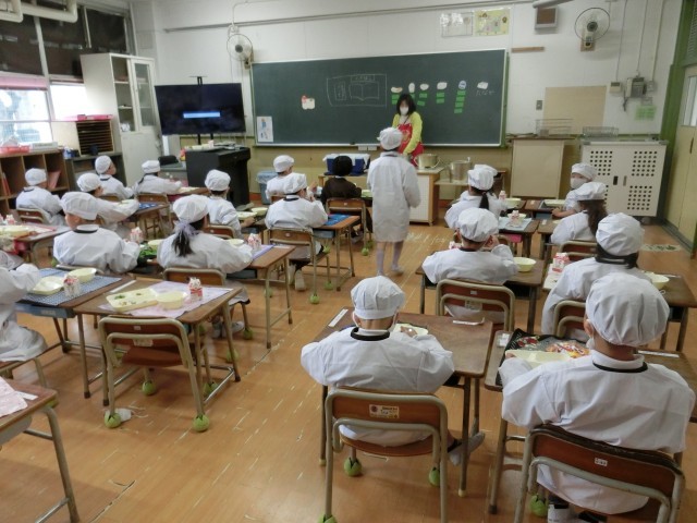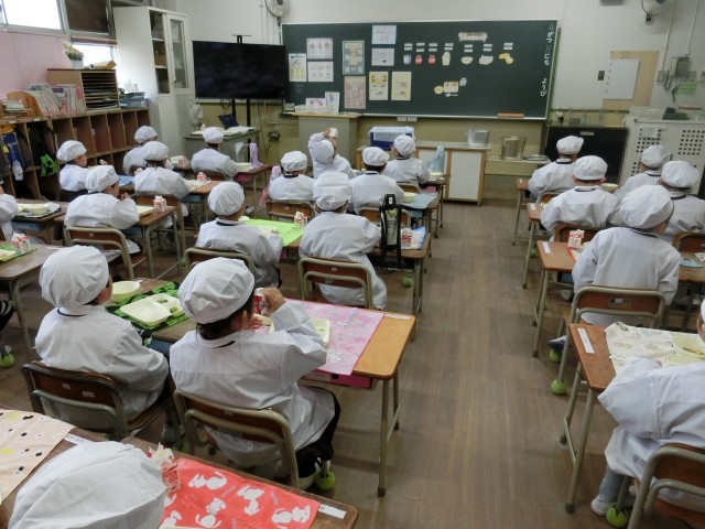 みんなで「おいしい!」と言いながら楽しく給食をいただきました
