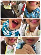 校医先生と歯科衛生士さんに、歯磨き指導をしていただきました。 前歯を赤く染め、...