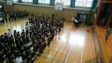 22日(月)、児童朝会でミュージックフェアにむけて校歌を練習しました。毎週歌っ...