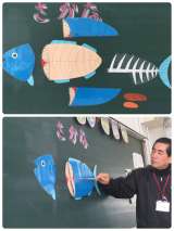 ランチルームで給食を食べました。 栄養教諭から、魚の身の取り方を指導していただ...