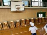 体育科の学習で「ボール投げあそび」をしています。ゴールに向かってボールを投げる...