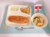 ☆白身魚フリッター ☆洋風煮 ☆カリフラワーのサラダ ☆レーズンパン ☆牛乳 ...