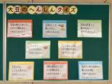 給食室前に、「大豆のへんしんクイズ」について掲示しています。大豆から作られる食...