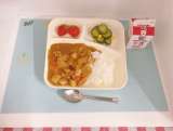 ☆チキンレバーカレーライス ☆きゅうりとコーンのサラダ ☆いちご ☆牛乳 「チ...