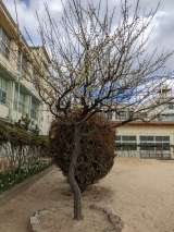 運動場の端にある、梅の花が咲いてきました。白くて小さなかわいい花です。まだまだ...