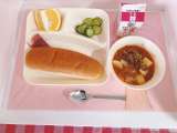 ☆ビーフシチュー ☆きゅうりのサラダ ☆あまなつかん ☆コッペパン ☆いちごジ...