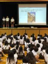 運動委員の児童が、遊具や道具の使い方についてクイズ形式で発表をしました。