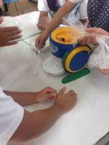 家庭科クラブでは裁縫や調理実習をしています。今日は調理実習の日。家からかき氷機を...
