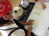 金曜日、地域の方に来ていただいて、うどん打ち体験をしました。生地を伸ばして、切...