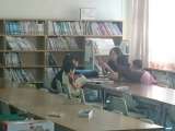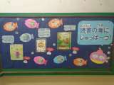 夏休みでは図書室も開放しています。低学年の子どもたちが、先生と楽しそうに読書を...