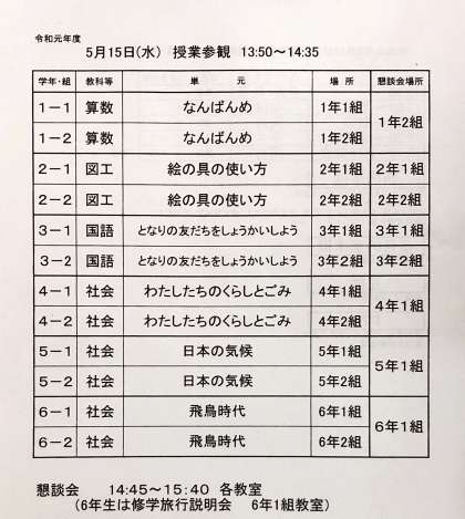 本日の参観の予定です。たくさんの方の来校をお待ちしています。