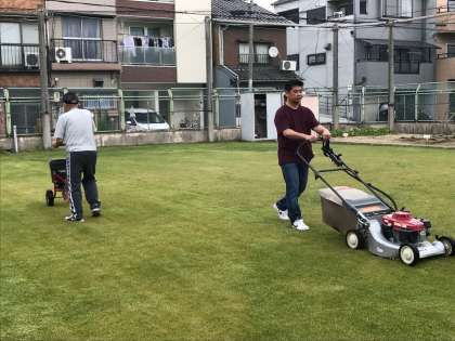 第二運動場の芝生の芝刈りや除草、肥料まき等は、地域のみなさまのご厚意で、定期的にしていただいています。