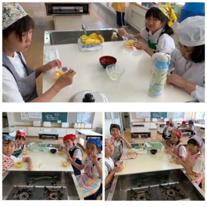 しらたま団子を作りました。フルーツで飾り付けをして、みんなで食べました。片付けまできちんとやり遂げました!