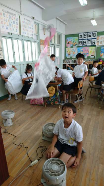 友達と一緒作ったものを浮かべて、とても楽しい活動でした。