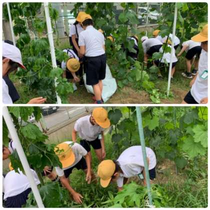 第二運動場で「ヘチマ」と「ゴーヤ」を育てていますが、