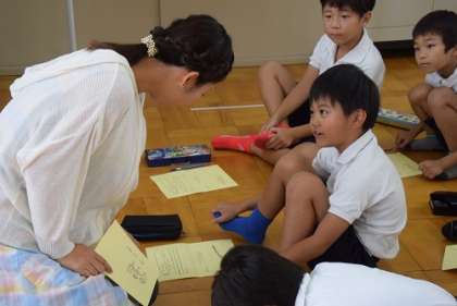 測定の前に、養護教諭から話をきいて、自分のがんばっているところ、よいところを見つける取り組みをしました。