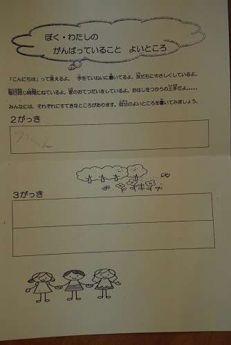自分のいいところを見つけるのは、思ったより難しい子もいましたが、先生に声をかけてもらって、みんないいところをみつけることができました。