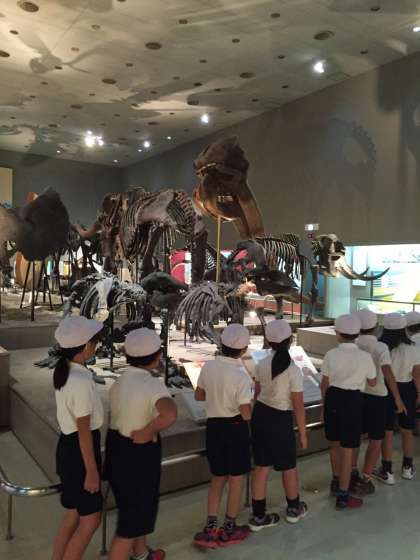 バスや電車ではしっかりとマナーを守って移動した後は、自然史博物館に入館しました。