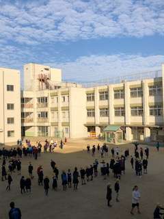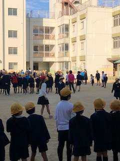 今日は、運動場で、たてわり班対抗のドッジボールをしました。